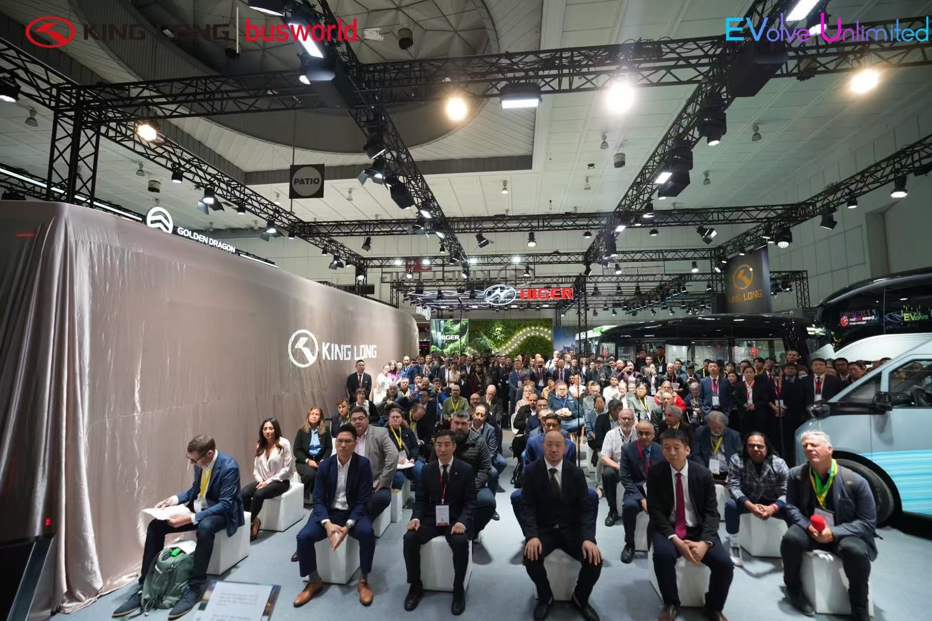 展会伊始,金龙展台人潮涌动、气氛热烈,吸引了众多海内外主流媒体与专业观众的关注。侯晨磊董事长表示:“金龙已完成全产品矩阵升级,涵盖七大产品系列及一个配套产业集群,旨在为全球客户提供更具竞争力的解决方案。”这一产品阵容,既是金龙二十载欧洲耕耘的成果体现,也彰显了金龙在技术领域的持续突破与对欧洲市场的深刻洞察。作为此次升级成果的集中展示,全方位展现了金龙的创新实力与技术前瞻性。